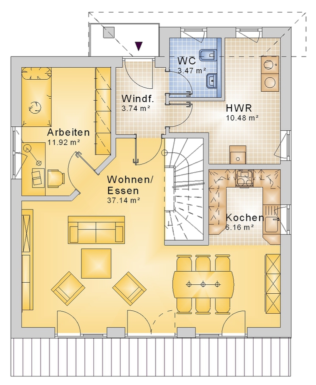 | Erdgeschoss | Wohnen/Essen | 37,14 m² | ||