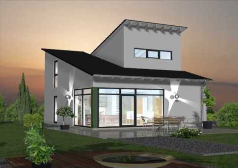 Die komplette Planung(Grundrisse, Ansichten, Schnitte, Bautragspläne), Mengenberechnung, Kalkulation und Visualisierung dieses Hauses wurde erstellt mit der Software Bauset-Hausplaner.