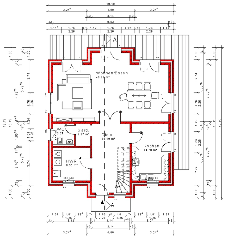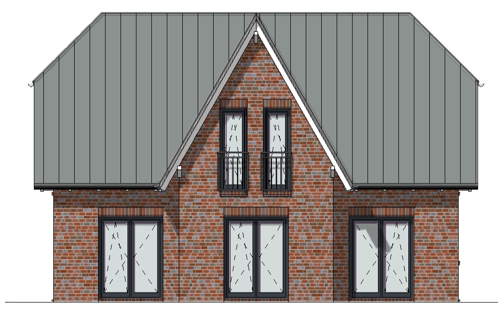 Die komplette Planung(Grundrisse, Ansichten, Schnitte, Bautragspläne), Mengenberechnung, Kalkulation und Visualisierung dieses Hauses wurde erstellt mit der Software Bauset-Hausplaner.