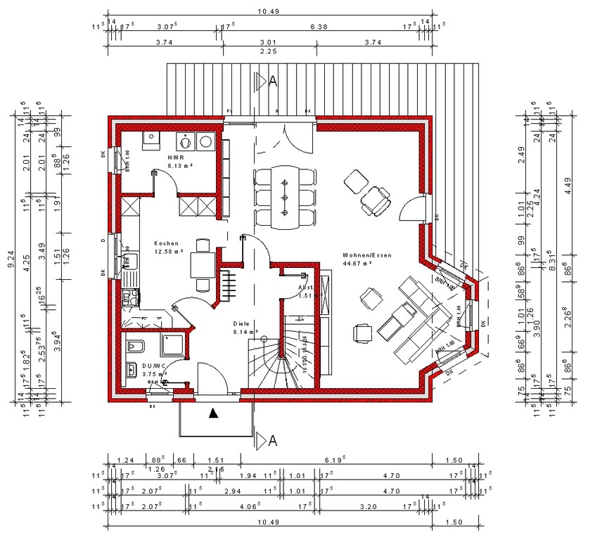 Die komplette Planung(Grundrisse, Ansichten, Schnitte, Bautragspläne), Mengenberechnung, Kalkulation und Visualisierung dieses Hauses wurde erstellt mit der Software Bauset-Hausplaner.