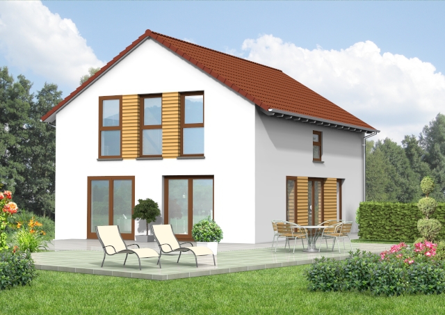 Die komplette Planung(Grundrisse, Ansichten, Schnitte, Bautragspläne), Mengenberechnung, Kalkulation und Visualisierung dieses Hauses wurde erstellt mit der Software Bauset-Hausplaner.