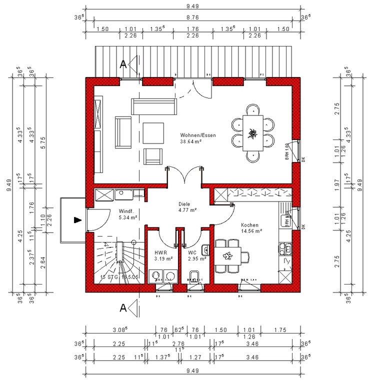 | Erdgeschoss | Wohnen/Essen | 38,64 m² | ||