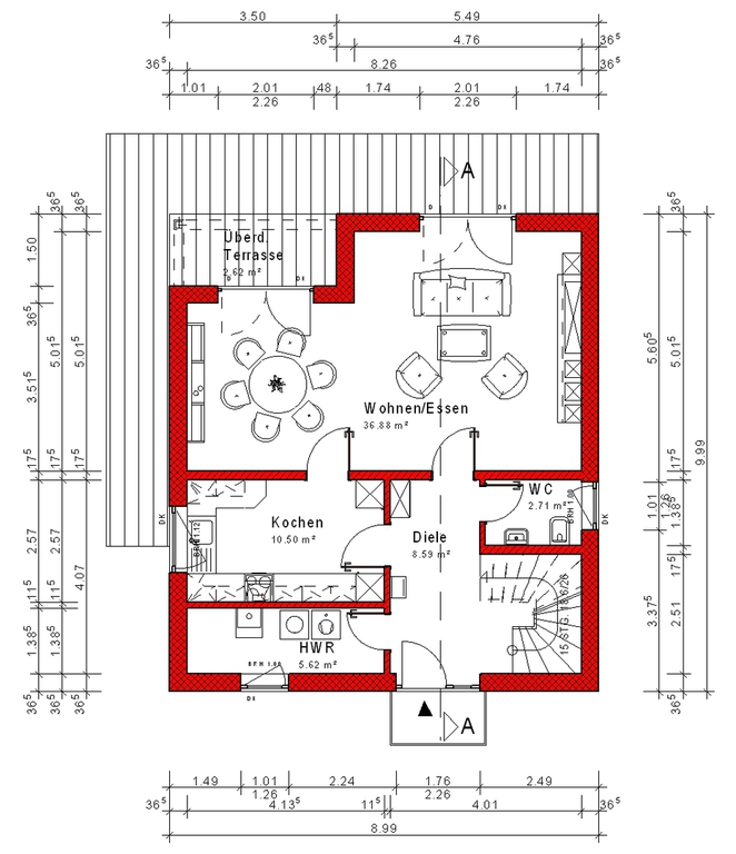 | Erdgeschoss | Wohnen/Essen | 36,88 m² | ||