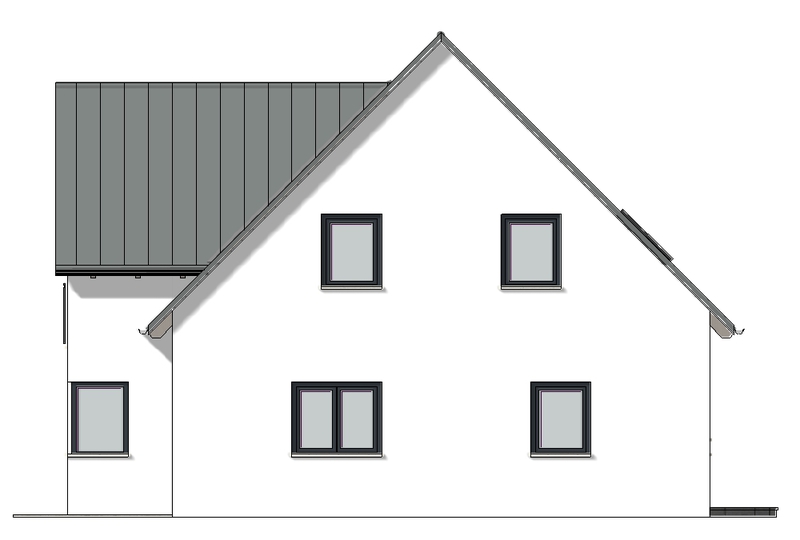 Die komplette Planung(Grundrisse, Ansichten, Schnitte, Bautragspläne), Mengenberechnung, Kalkulation und Visualisierung dieses Hauses wurde erstellt mit der Software Bauset-Hausplaner.