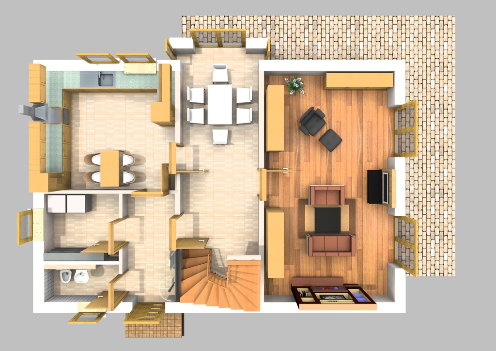 Die komplette Planung(Grundrisse, Ansichten, Schnitte, Bautragspläne), Mengenberechnung, Kalkulation und Visualisierung dieses Hauses wurde erstellt mit der Software Bauset-Hausplaner.
