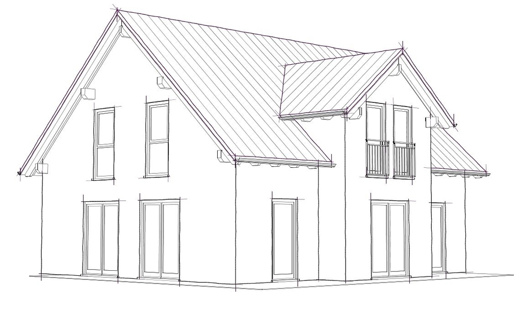 Die komplette Planung(Grundrisse, Ansichten, Schnitte, Bautragspläne), Mengenberechnung, Kalkulation und Visualisierung dieses Hauses wurde erstellt mit der Software Bauset-Hausplaner.