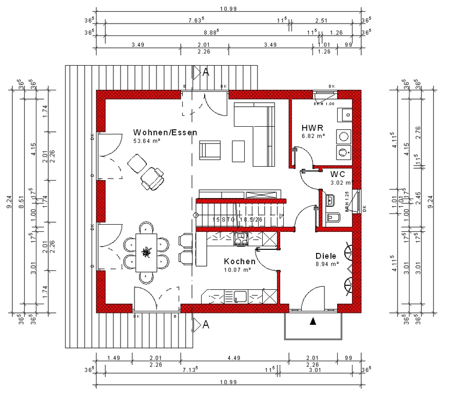 Die komplette Planung(Grundrisse, Ansichten, Schnitte, Bautragspläne), Mengenberechnung, Kalkulation und Visualisierung dieses Hauses wurde erstellt mit der Software Bauset-Hausplaner.