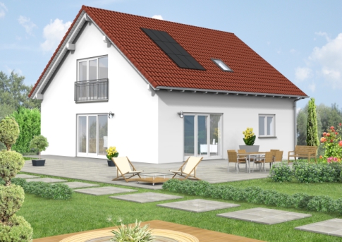 Die komplette Planung(Grundrisse, Ansichten, Schnitte, Bautragspläne), Mengenberechnung, Kalkulation und Visualisierung dieses Hauses wurde erstellt mit der Software Bauset-Hausplaner.