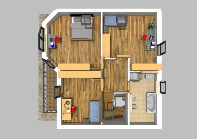 Die komplette Planung(Grundrisse, Ansichten, Schnitte, Bautragspläne), Mengenberechnung, Kalkulation und Visualisierung dieses Hauses wurde erstellt mit der Software Bauset-Hausplaner.