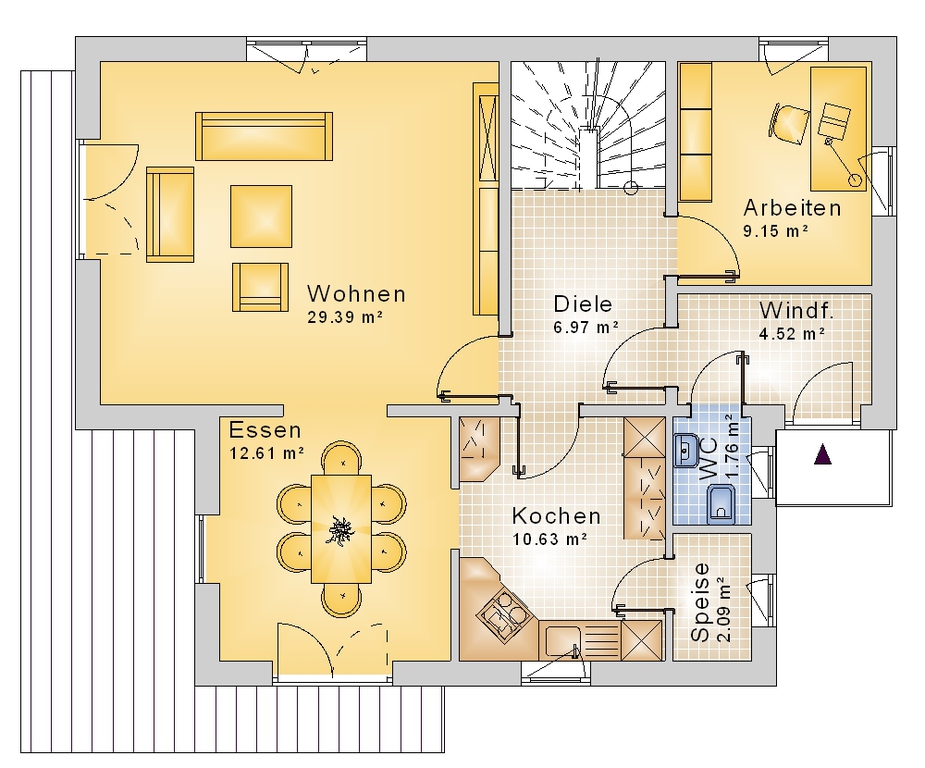 | Erdgeschoss | Wohnen/Essen | 29,39 m² | ||