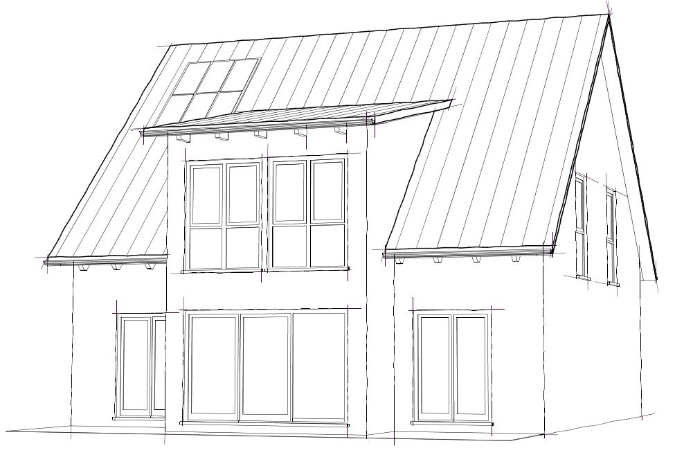 Die komplette Planung(Grundrisse, Ansichten, Schnitte, Bautragspläne), Mengenberechnung, Kalkulation und Visualisierung dieses Hauses wurde erstellt mit der Software Bauset-Hausplaner.