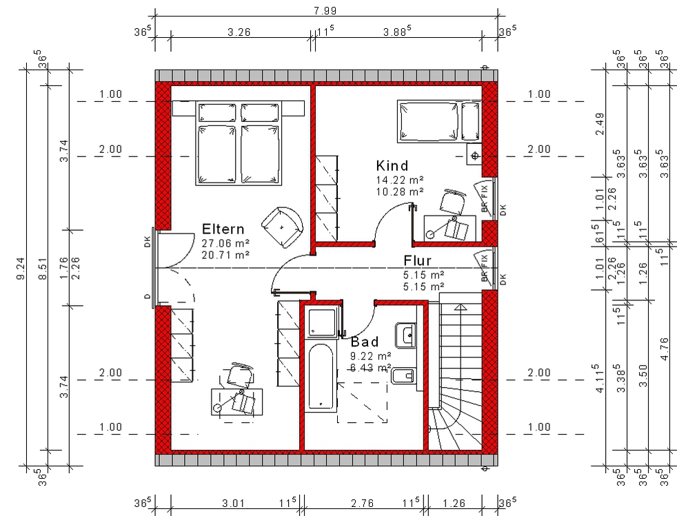 Die kompletten Daten sind als Vorlagen für unsere Softwareprodukte Bauset, Bauset-Hausplaner und meinHausplaner verfügbar.