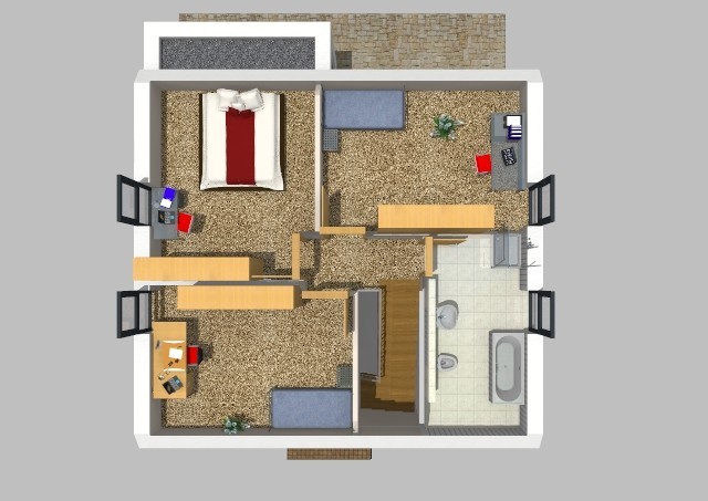 Die komplette Planung(Grundrisse, Ansichten, Schnitte, Bautragspläne), Mengenberechnung, Kalkulation und Visualisierung dieses Hauses wurde erstellt mit der Software Bauset-Hausplaner.