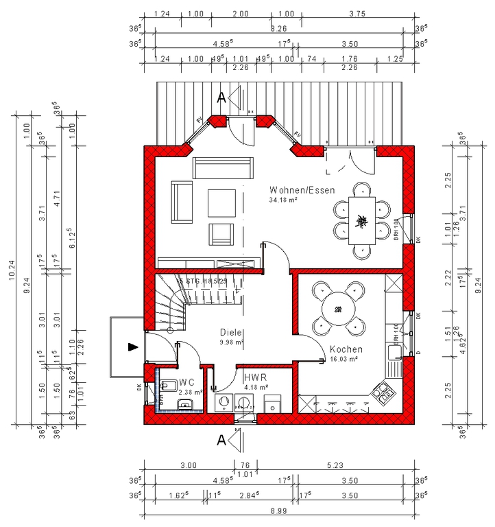 | Erdgeschoss | Wohnen/Essen | 34,27 m² | ||